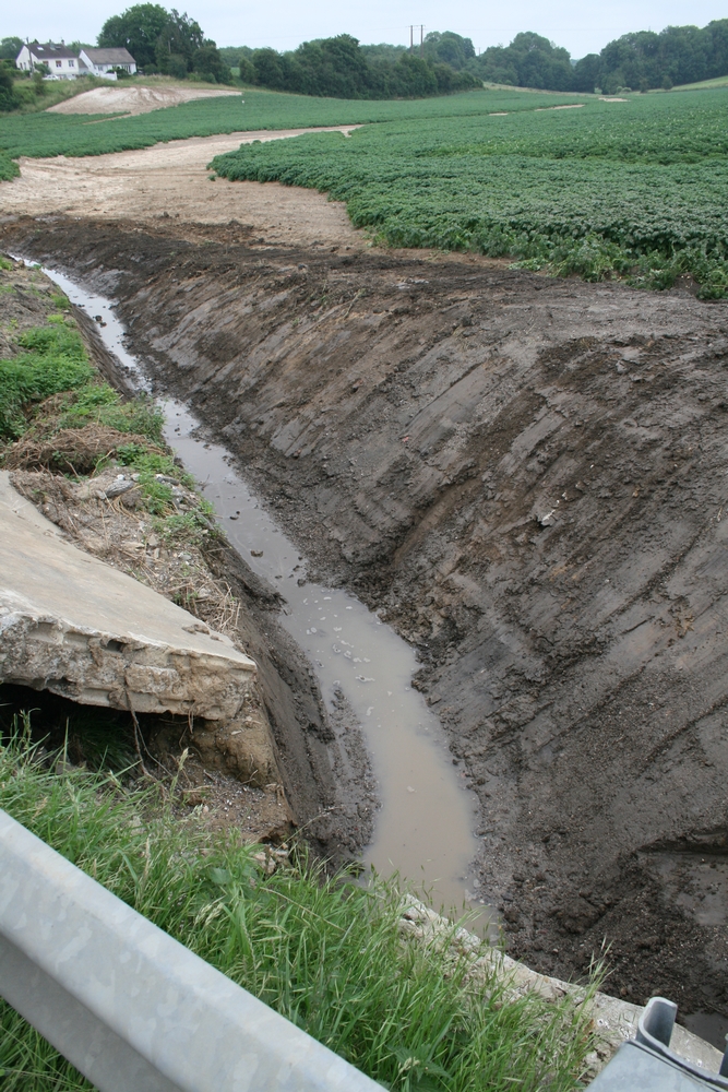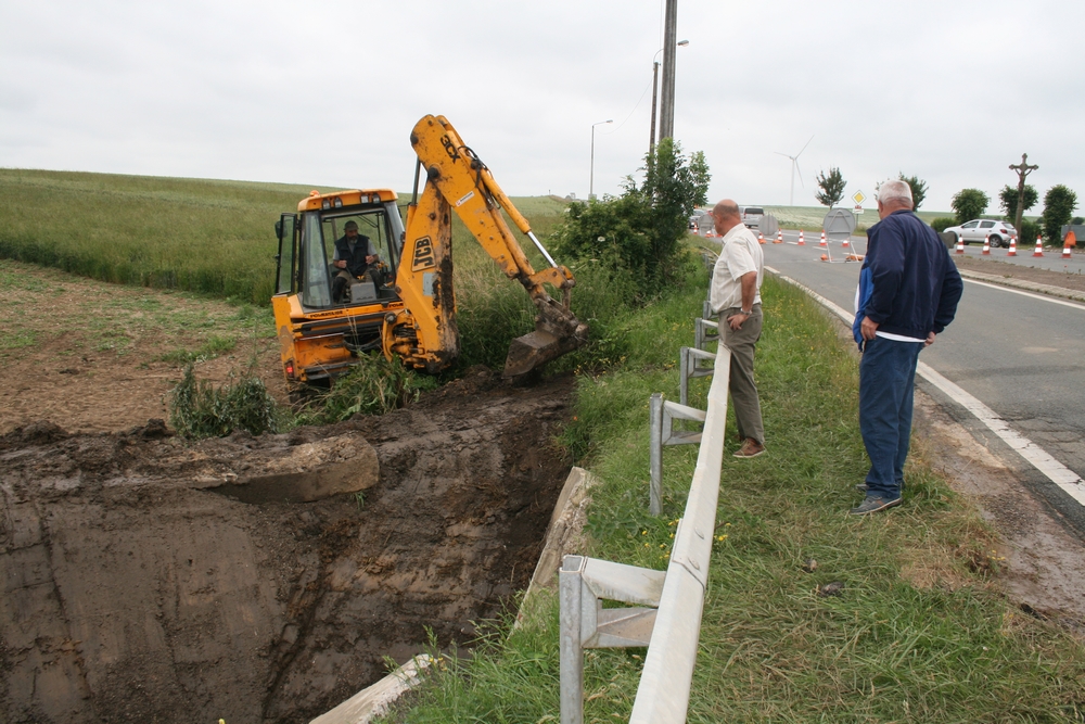 Fin des travaux sur la RN 25. Suite aux inondations, une seule journée a suffit pour réaliser le nettoyage de la buse qui traverse la RN 25 (sortie sud de Beauval). Plusieurs intervenants étaient à pied d’œuvre, dont le Maire et un adjoint pour la coordination.