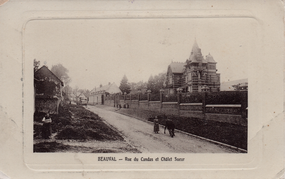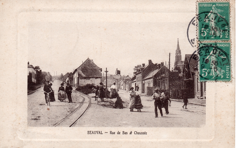 Rue de Bas en 1911 (actuellement rue Armand Devillers). Présence d’une ligne de chemin de fer