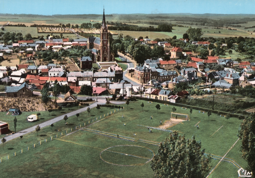 Vue aérienne sur le centre du village